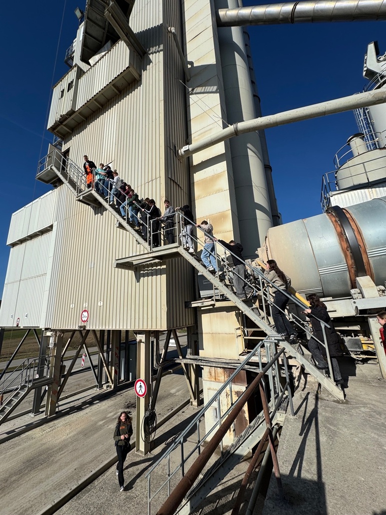 Am Freitag, den 13.03.2026 besuchten uns die 7. und 8. Klassen der Oettinger Montessori Schule um unser Unternehmen und die Ausbildungsberufe im Bau Handwerk kennenzulernen. Ein Highlight war die Besteigung des 40 m hohen Turms der Asphalt Mischanlage. Einige konnten auch mit dem neuen Aufzug hochfahren und die Aussicht über das Ries genießen.